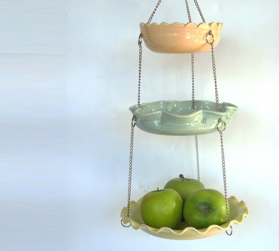Ceramic hanging bowls. Perfect for hanging some fruit near the kitchen sink.
